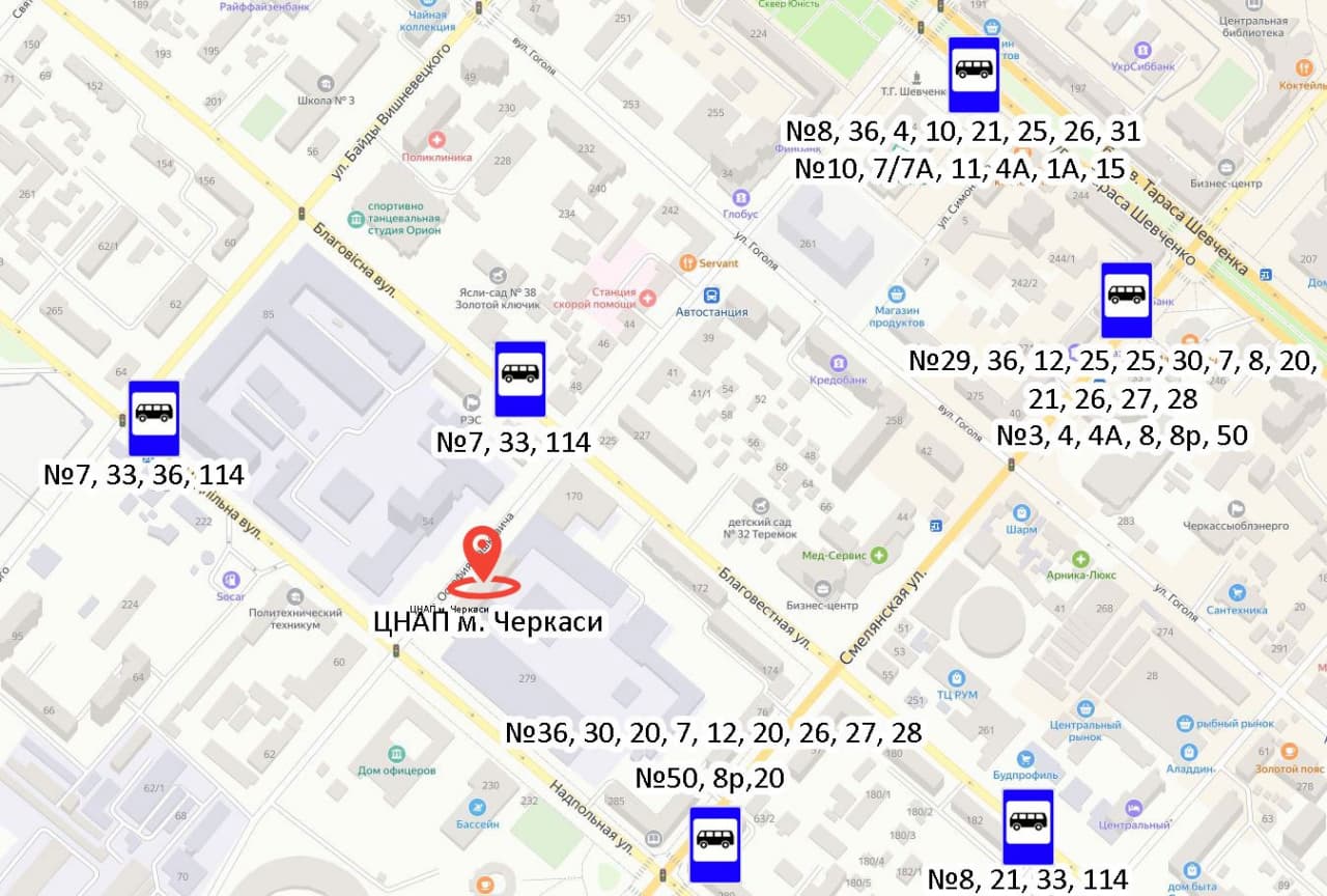 Зупинка «Стадіон» по вул. Смілянській (парна сторона):